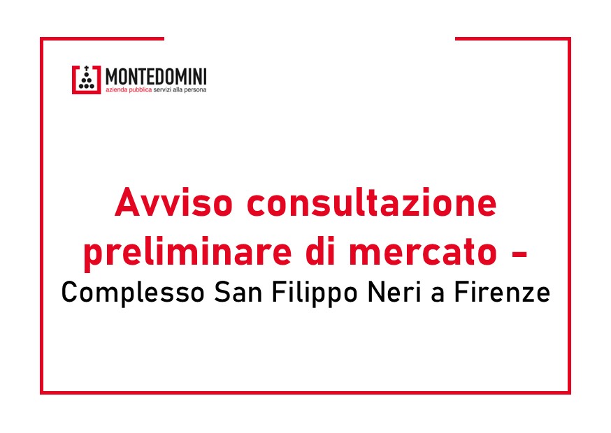 L’A.S.P., vista la vastità del complesso immobiliare, la sua peculiare collocazione geografica (centro storico di Firenze) e le rilevanti esigenze manutentive che lo caratterizzano, intende avviare una consultazione preliminare di mercato con esperti, operatori di mercato o altri soggetti idonei finalizzata all’acquisizione di conoscenze, informazioni, indicazioni ai fini della predisposizione del bando e degli altri atti della futura gara.