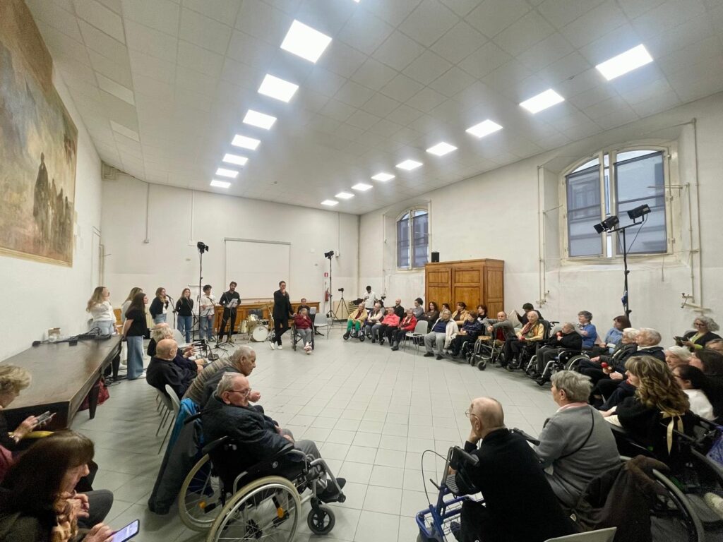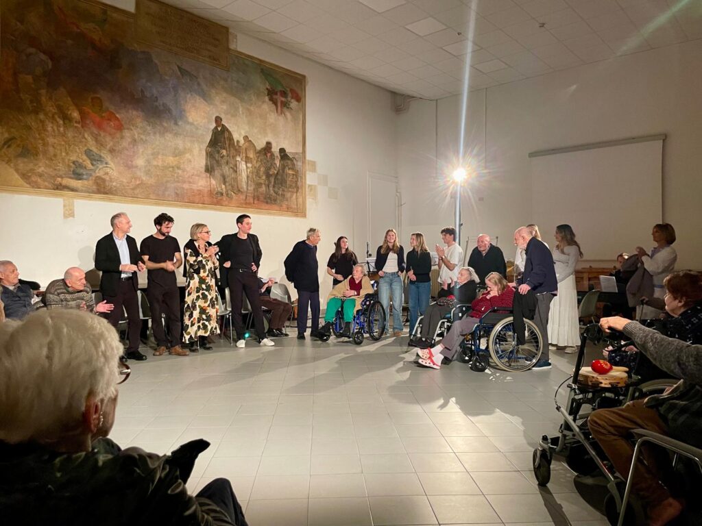 È stato un vero ed emozionante momento di condivisione a conclusione di una ricca stagione di attività, laboratori teatrali e musica svolti fino ad oggi grazie al contributo dell’Accademia Europea di Firenze e alla partecipazione di molti residenti della RSA 1, RSA 2, RSA Thoaur e Centro Diurno “Athena”: un gruppo eterogeno di quarantadue ospiti ha seguito il percorso ideato e proposto dall’Accademia ogni martedì pomeriggio a partire dall’ultima settimana di agosto.